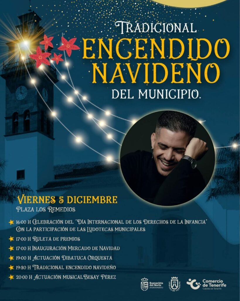 La Navidad comienza oficialmente en Buenavista del Norte hoy viernes bajo el lema ‘Esta Navidad, Buenavista brilla contigo’. La jornada contará con el tradicional encendido de luces, así como actividades musicales, talleres infantiles, castillos hinchables y ruletas de premios, todas ellas en la plaza de los Remedios.