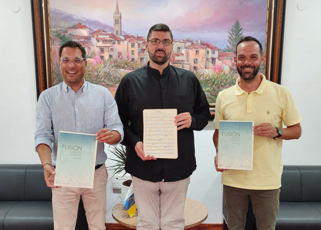 El compositor Jesús Agomar entrega su obra ‘Fusión’, que interpretarán en noviembre las dos bandas de Los Realejos