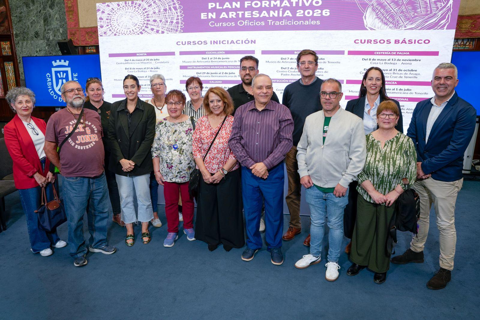 El Cabildo de Tenerife, a través de la Empresa Insular de Artesanía S.A, la oferta de una serie de cursos en Oficios Artesanos Tradicionales incluidos en el plan formativo en Artesanía 2026, en colaboración con el Museo de Artesanía Iberoamericana de Tenerife (MAIT), y los Ayuntamientos de Candelaria, Santa Cruz de Tenerife, San Cristóbal de La Laguna, de Arona y de La Orotava. La rueda de prensa ha contado con la presencia del consejero de Educación y Empleo, Efrain Medina, el gerente de la Empresa Insular de Artesanía, Ricardo Cólogan y el miembro del Departamento Educativo del MAIT, Domingo Reyes.