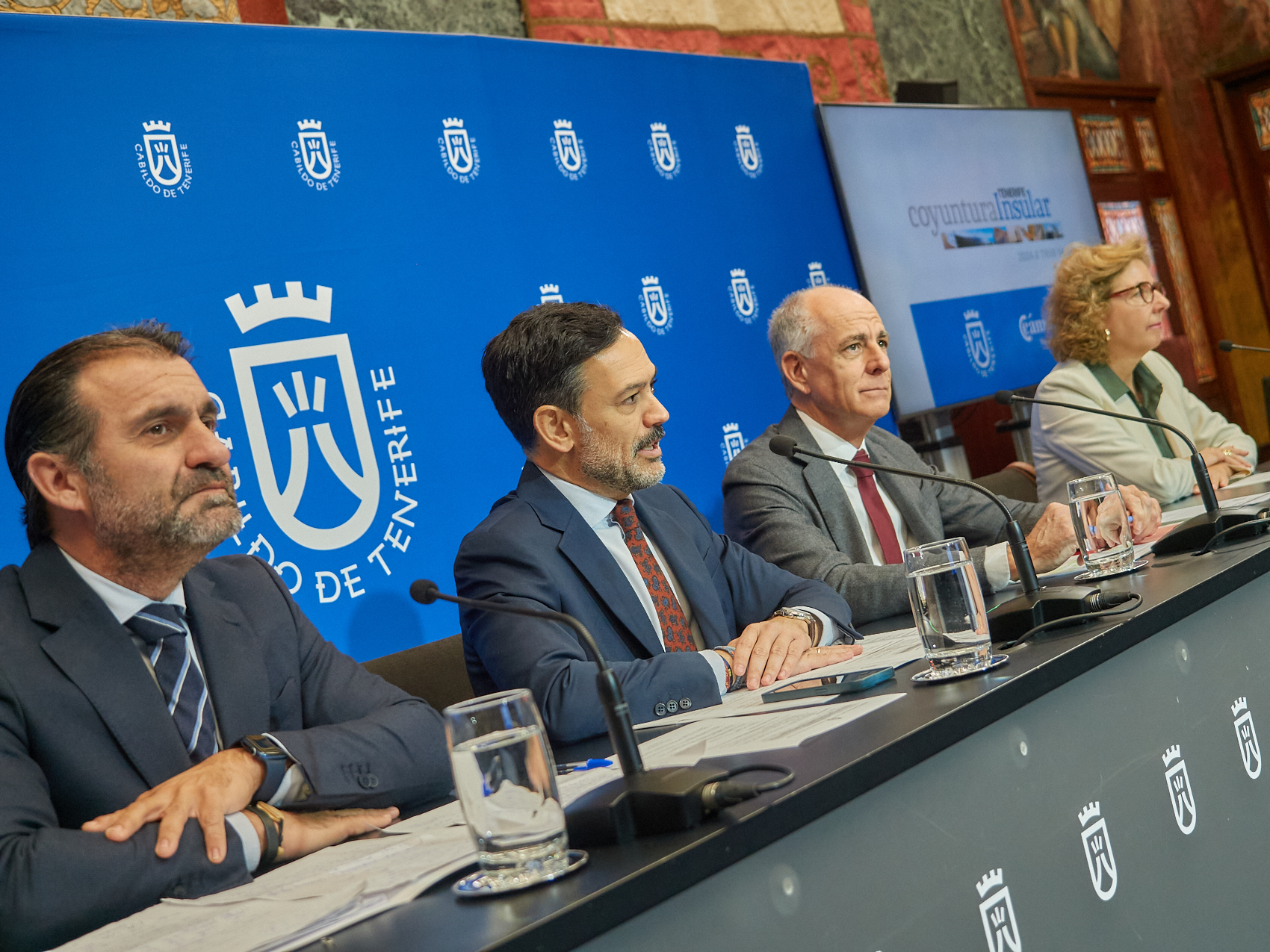 El vicepresidente de la institución insular, Lope Afonso, el consejero de Industria, Manuel Fernández, el presidente de la Cámara de Comercio, Santiago Sesé, y la directora general de la entidad cameral, Lola García, presentaron este martes los datos que contiene el Boletín correspondientes al último trimestre de 2024, que calificaron como “unos buenos registros que se debieron, principalmente, a los resultados del sector turístico y a su efecto tractor en el conjunto de actividades productivas de la isla”.